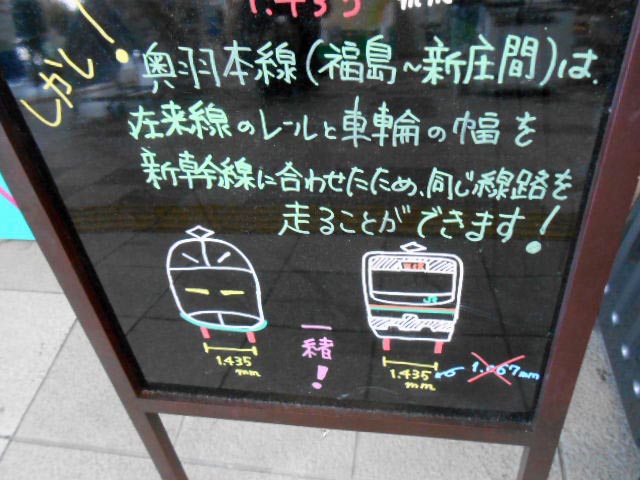 若い女性の駅員さんが描いたと思しき「新幹線が何故、奥羽本線を