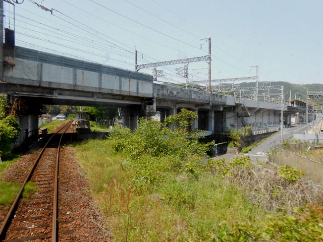 暫く行くと山陽新幹線の高架下をくぐります。ココにあるのが清流新岩国駅。