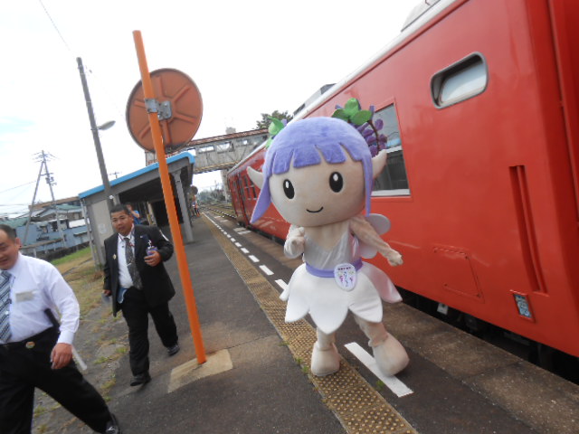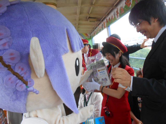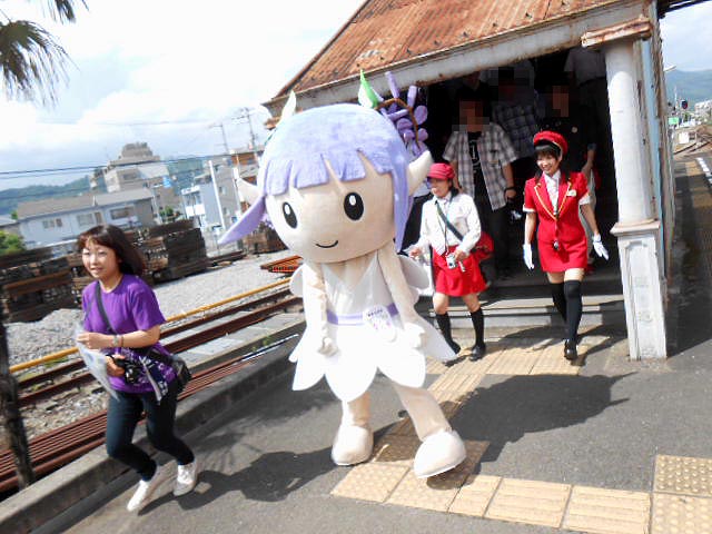 ふじっこちゃんと一緒に、みんなで途中下車。