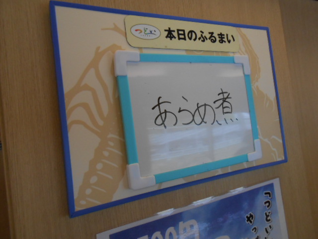 以前に来た時は、伊勢海老の味噌汁の「振る舞い」があったの