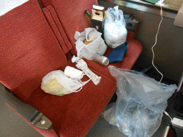 私の席は、午前中から持ち越しの日本酒やら、追加で買ったツマミやらで