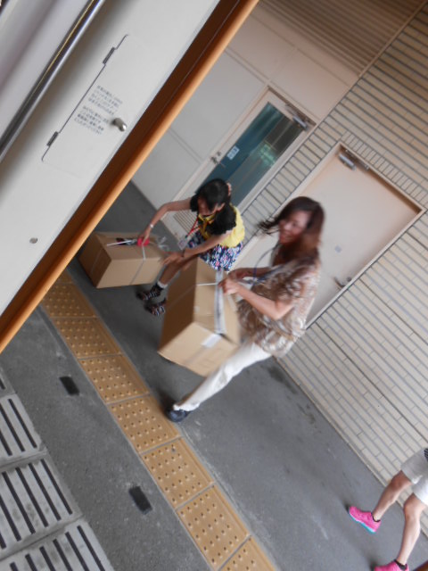 川副さんがデッキで箱を開け、「みんな取りに来てー。」