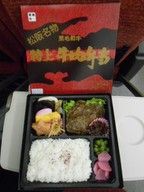 駅弁は松阪の新竹(あらたけ)の牛肉弁当。
