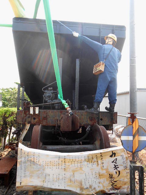 石炭貨車に乗った巨大カマキリ!