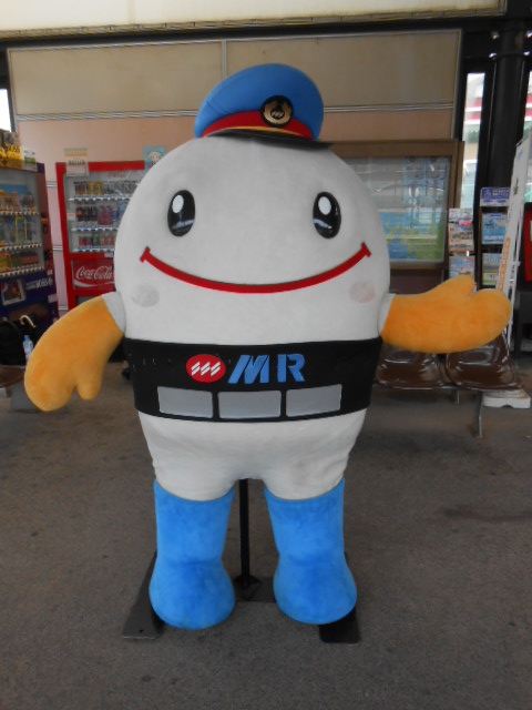 とホームに、御当地のマスコットキャラ、