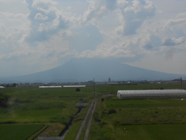 はい、車窓には岩木山が見えてきました。