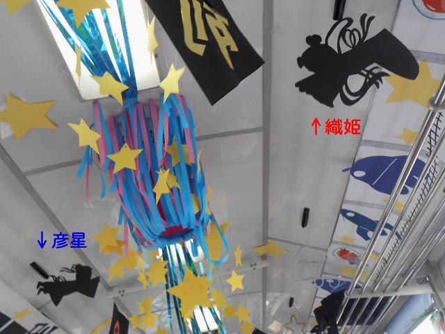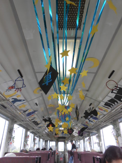 6月末の事なので車内は「七夕列車」という事で、色々と装飾がありました。