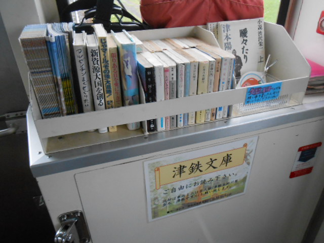 車内の一端には「津鉄文庫」という書棚がありました(持って降りても