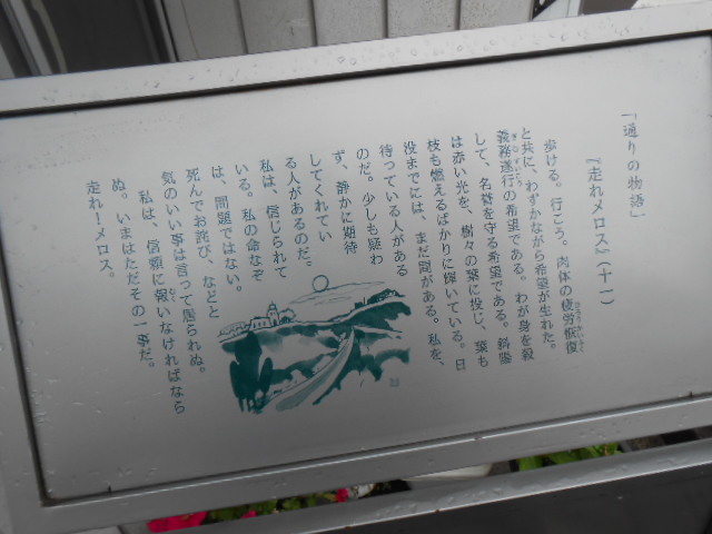 通りの各所に代表作である「走れメロス」のシーンを抜粋した?パネル