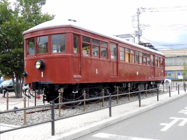 駅前にあった古い車両、開業当時の「モ1型」らしいです。
