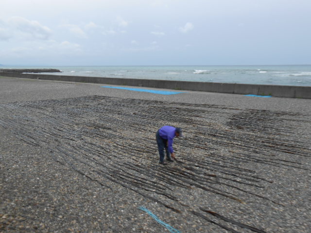 …と、海岸沿いでは日高昆布を干してる光景。いい感じの車窓です。