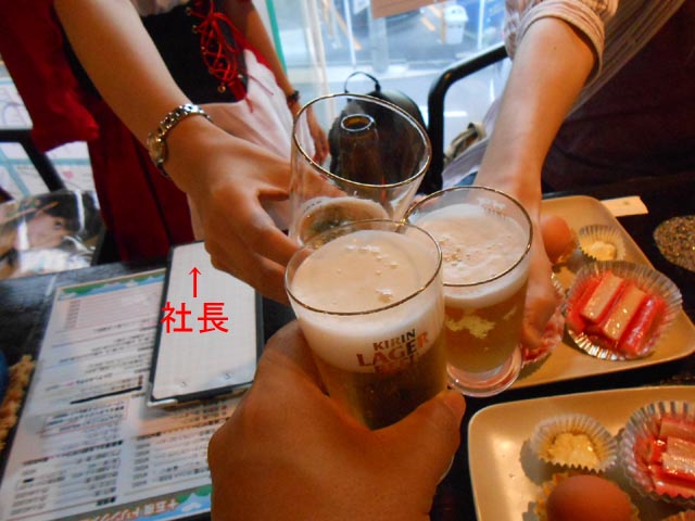 社長と3人だけで乾杯。