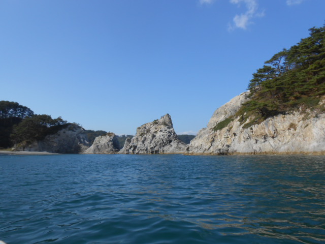 リアス式に入り組んだ湾内を、小さな船の低い目線から見るので、
