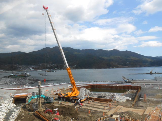 海岸沿いの防波堤などの工事と、住宅地を内陸部の高台へ移す工事を