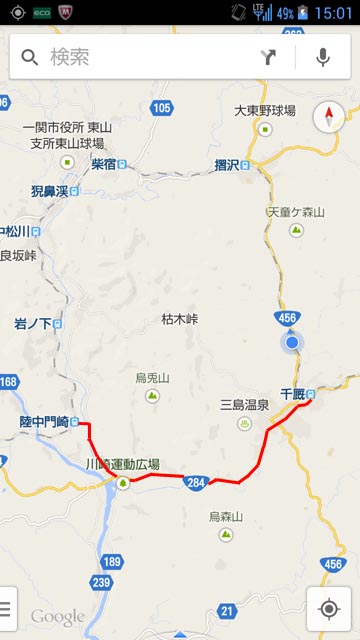 上り方向で言うと千厩から陸中門崎の間で山を迂回