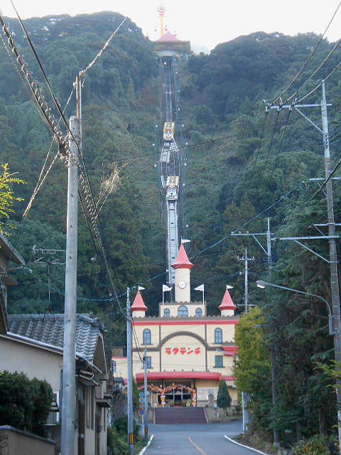 遊園地まで昇り降りするケーブルカーが、