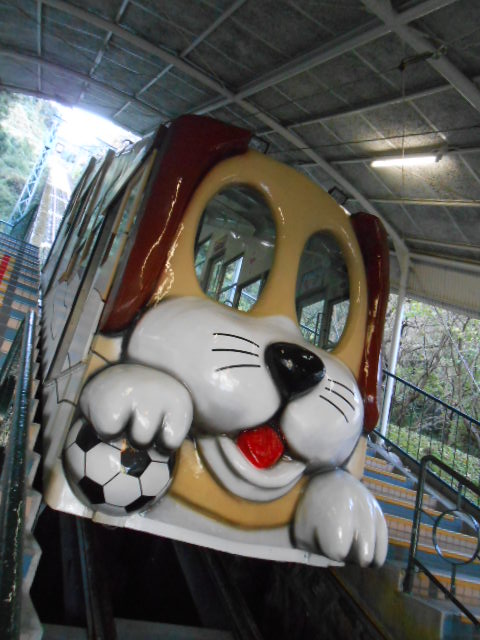 わんこの顔をした「ドリーム号」がお出迎え。以前は「ケーブルカーのみ」