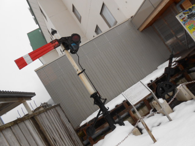 駅舎の脇には、古い時代の腕木信号機などが少し保存されています。