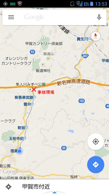 で、今は新名神の高速道路のインターが出来た辺りが事故現場です。