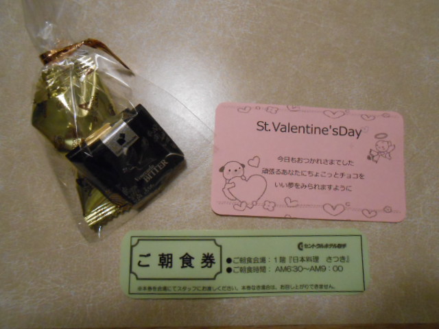 ホテルに戻ったら、客室係の方からと思しきチョコが置いてありました。
