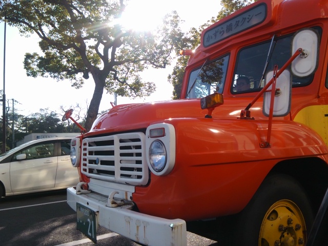 一足早く、本日乗車予定のボンネットバスに遭遇してしまいました。