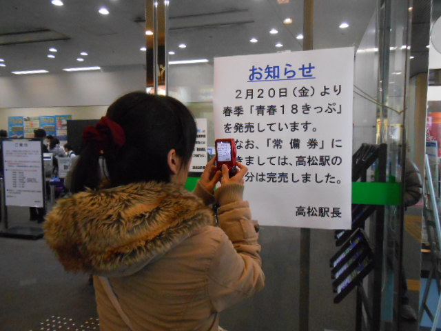 高松駅では、青春18きっぷの常備券(赤券)が売られています。