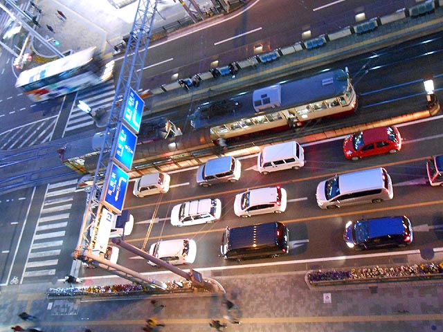 私が充てられて部屋からは、眼下にはりまや橋交差点の電停がよく