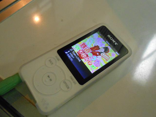 ウォークマンと小型のスピーカーを用意してきたんですよ。