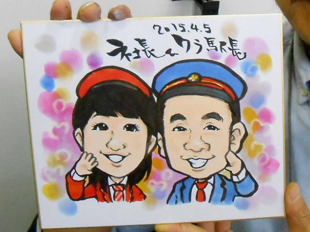…似顔絵は、以前に能勢電鉄のイベントで宝塚大学の方に描いて頂いて