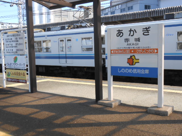 東武鉄道との共同使用駅である赤城駅に到着しました。