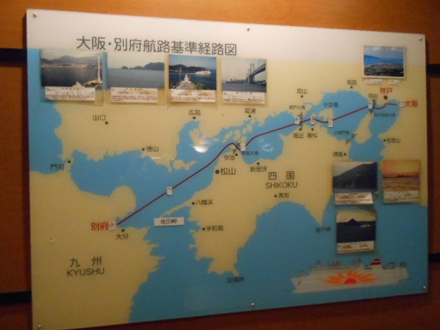 大阪を出たら、ずっと瀬戸内海を通って別府まで行くようです。瀬戸大橋