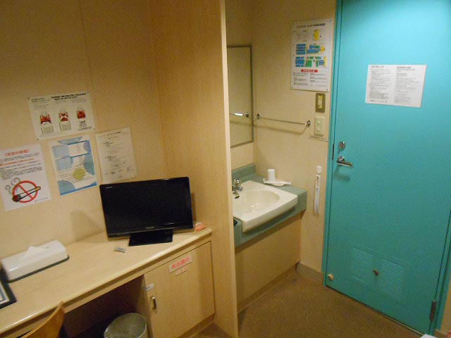 一応は個室です。ベッドと簡単な机、テレビと洗面所はありますが、