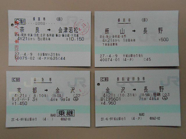 だから乗車券は最も遠い会津若松まで。飯山~長野の往復は別に