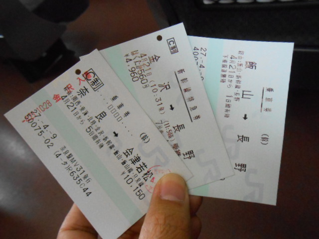 切符と飯山~長野の普通乗車券、それに指定席特急券ですね。