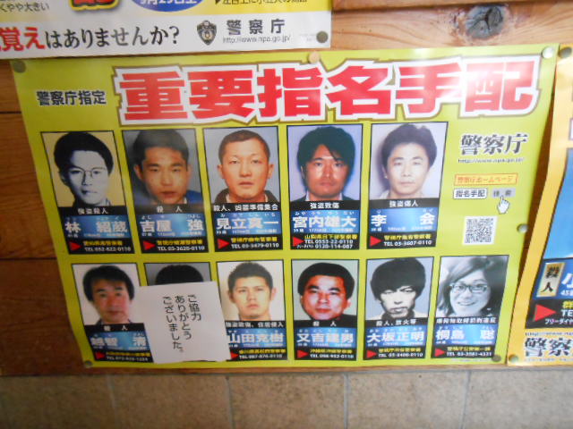 そして全国的に御馴染みの指名手配犯人の皆さん…。