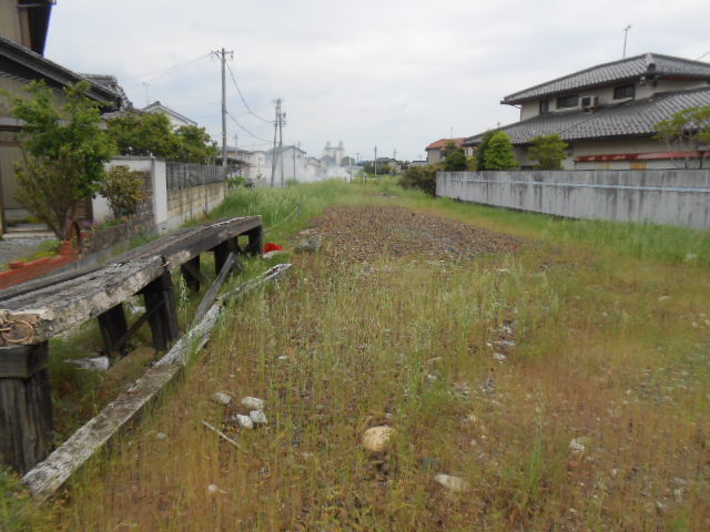 建物の向かい側の空き地も廃線跡ですね。