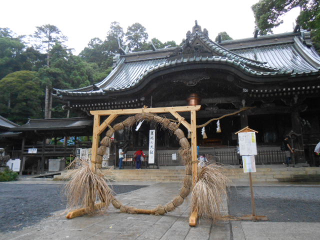 参道の真ん中にある大きな輪っかは、茅の輪くぐりに使うモノでしょう。