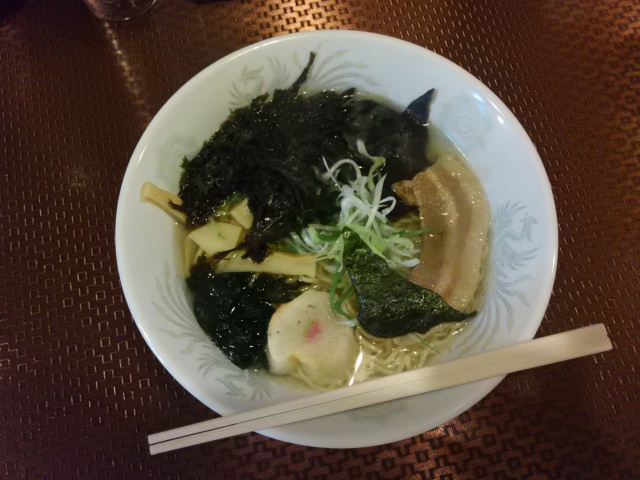 前夜に目に付いたラーメン屋で、岩海苔が大量に入ったラーメンを頂き