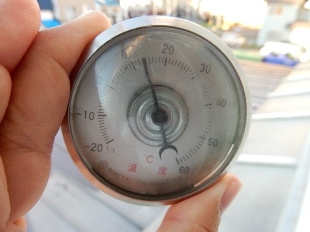 …で、朝の気温を持参した例の温度計で計ると、何と12℃!