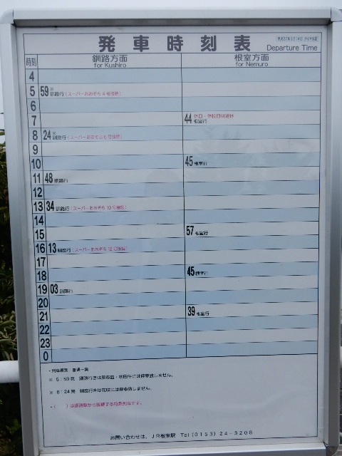 さて東根室駅です。時刻表