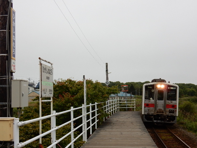 釧路方向から根室行きの列車が到着。通学の高校生と思しき若者が