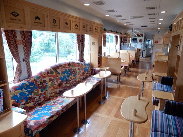 そしてまぁ…よく見る感じのインテリア。豊岡方向に向かって右側が海