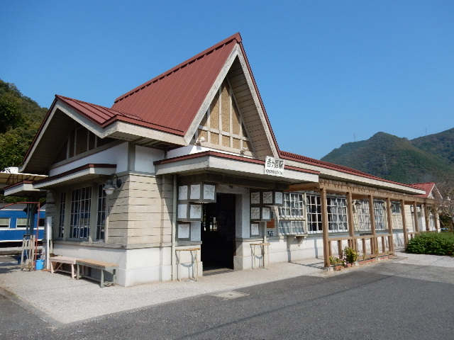 1つ手前の吉ヶ原駅と、幾つかの車両が