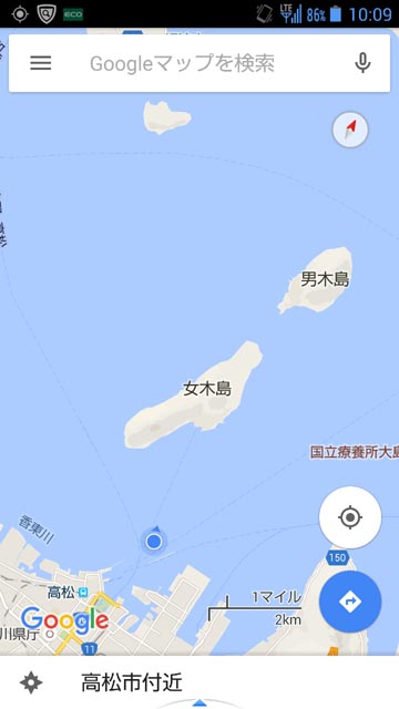 高松港から約8キロの沖合い、フェリーで約45分の距離にあります。