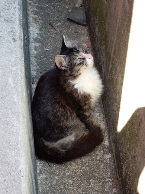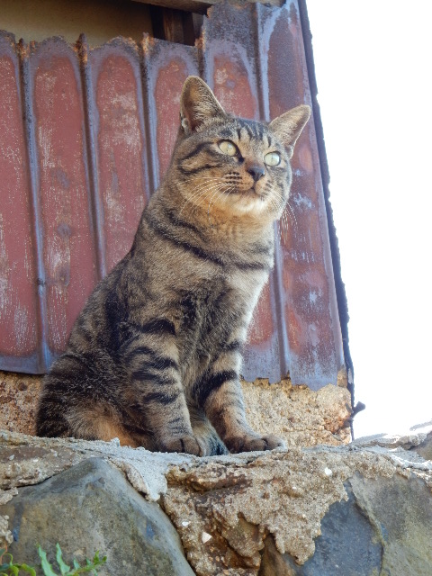 海を見つめる、町のボスっぽい堂々とした猫。 近付いても全く動じない