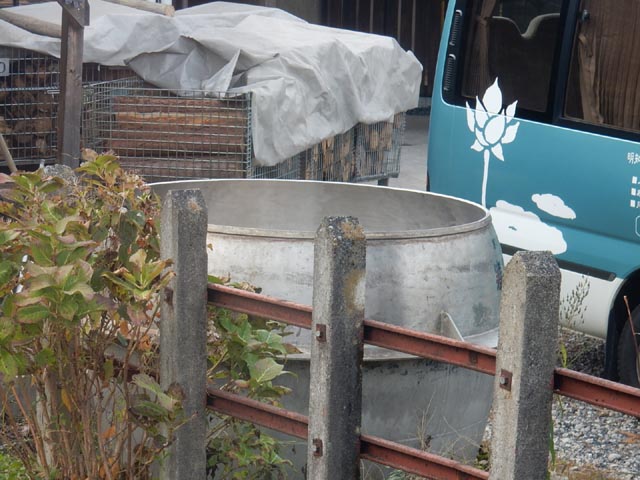 ホーム脇の巨大な釜は、ご当地の名物である寒天を作る時のモノ