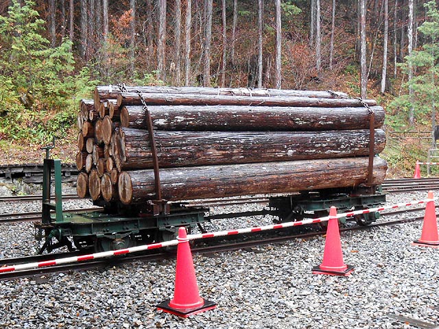 載らない大荷物の時は、丸太用の貨車に一重だけ材木を積んでソノ