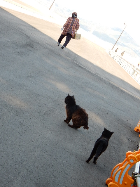 3匹は島民のおばちゃんの後に付いてトコトコ移動。 ちょっと観察して
