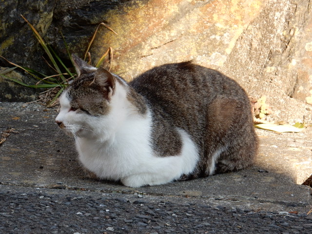 坂道に並び立つ集落内に入ると、陽の当たる場所に何匹か居ましたよ。
