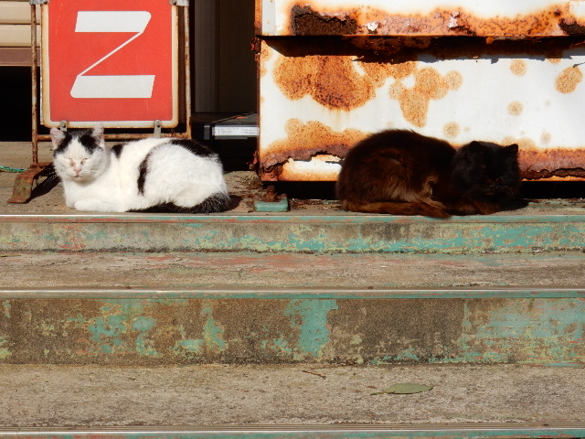 田代島の猫たちは、野良にしては人懐っこいと言うか、向こうから寄って